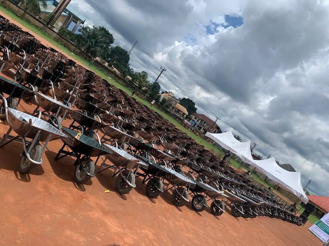 However, instead of vocational training or modern tools, what was unveiled on September 9, 2025, at Igboukwu Central School were wheelbarrows, hoes, and cutlasses.