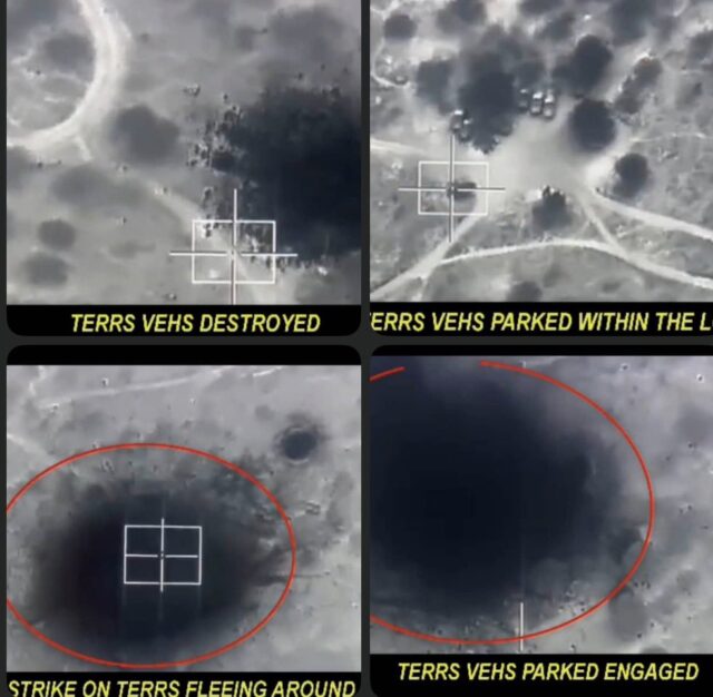 After positive identification and strict compliance with Rules of Engagement, the targets were engaged. Post-operation Battle Damage Assessment confirmed that all concealed vehicles were destroyed and terrorist elements at the hub were neutralised.