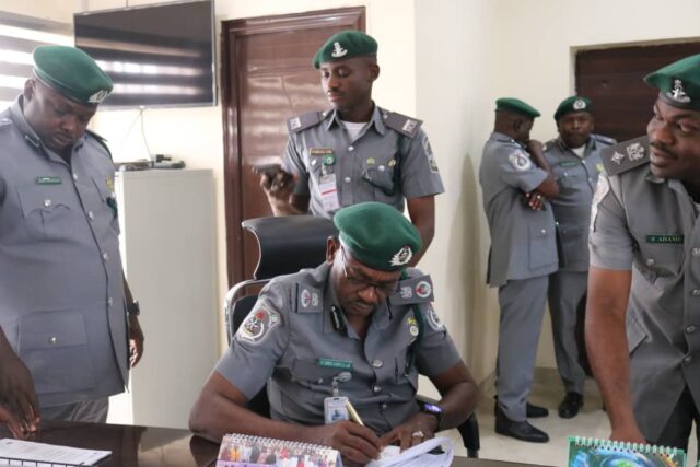The Nigeria Customs Service (NCS), Borno/Yobe Area Command has entered a new phase of leadership following the formal handover ceremony that saw Comptroller Mohammed Abdullahi assume office as the new Customs Area Controller.According to a statement by the Command’s Public Relations Officer, Deputy Superintendent of Customs Abdullahi Ubali, the transition on Tuesday, 9 December 2025, followed the appointment of the former Area Controller, Assistant Comptroller-General Muhammad Malah, to the Management Team as ACG Board.The ceremony, held at the Command’s Conference Hall, brought together senior officers, unit heads, retired personnel, sister agency representatives, and stakeholders to witness the smooth transition in line with the Service’s administrative tradition.In his farewell remarks, ACG Malah expressed gratitude to Comptroller-General Adewale Adeniyi, and the management team for the opportunity to serve. “My time in this command has been truly rewarding and impactful, achieved through professionalism, teamwork, and the steadfast support of our stakeholders. I encourage all officers to extend the same commitment and loyalty to the incoming CAC” ACG Malah said.Comptroller Abdullahi, in his acceptance remarks, thanked the Comptroller-General of Customs for the trust placed in him and commended his predecessor for exceptional leadership. He pledged to build on the Command’s achievements, especially in revenue generation, trade facilitation, anti-smuggling operations, and ethical service delivery.He called on officers to remain disciplined, diligent, and responsible, while assuring stakeholders of continued collaboration to strengthen operations across the Borno/Yobe corridor.Attendees described the transition as a sign of stability and continuity within the Nigeria Customs Service, reflecting its commitment to better service delivery and public confidence.The event also featured the signing of handover documents, presentation of the Service flag, and group photographs marking the leadership change.