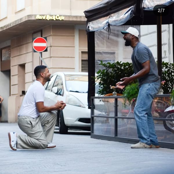 In the pictures, Jussie is seen kneeling on one knee on a sidewalk outside a restaurant, holding a ring as he proposes. Jabari, standing in front of him, appears touched by the moment.