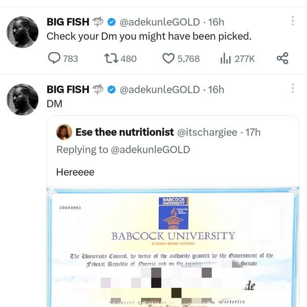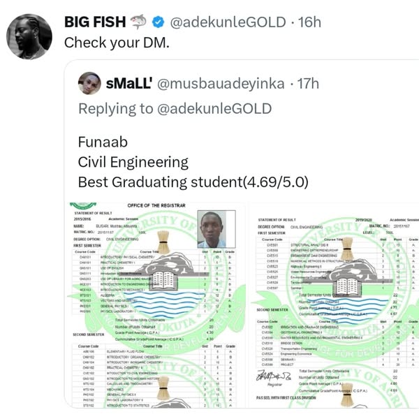 It all began when the artist tweeted, “If you graduated with First Class, post your transcripts.” Though he didn’t explain why, many users quickly responded with proof of their academic excellence.