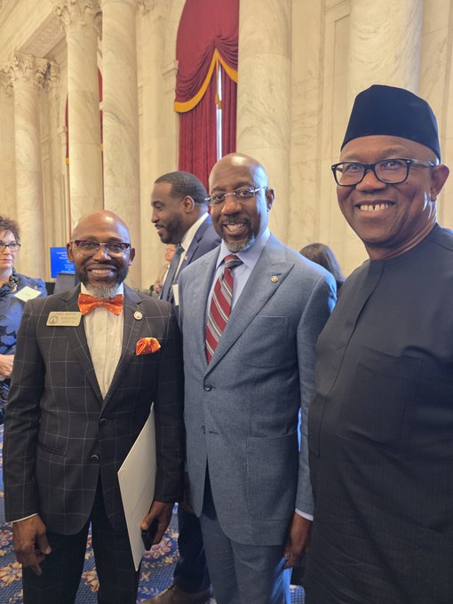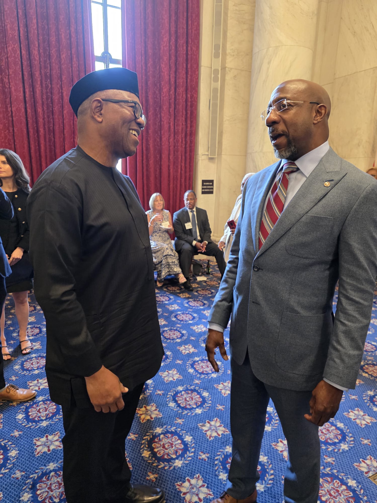 At the Congressional Black Caucus Week Reception in the Senate Kennedy Caucus Room, Obi joined U.S. Senators Jon Ossoff and Raphael Warnock in discussions on strengthening African democracy and development. He said Senator Warnock encouraged deeper dialogue on Africa’s governance future.