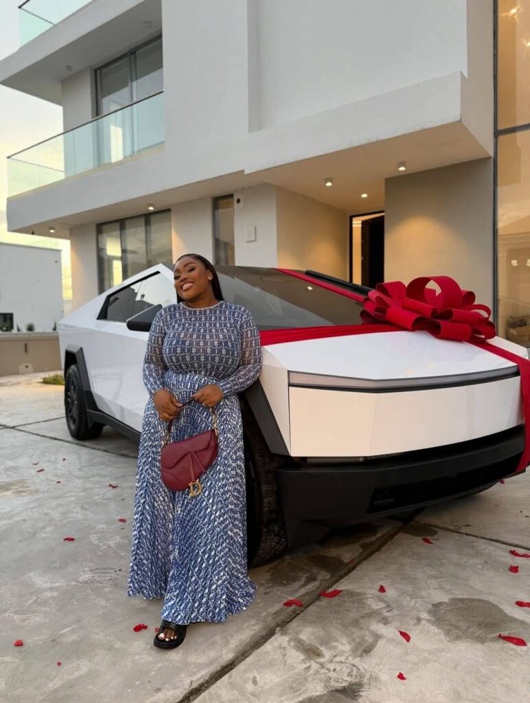 A Nigerian businesswoman with the name Onuzurike Oluomachi has sparked debates online after purchasing and receiving a Tesla Cybertruck car, being the first woman in Nigeria to own one of the world’s most expensive cars.