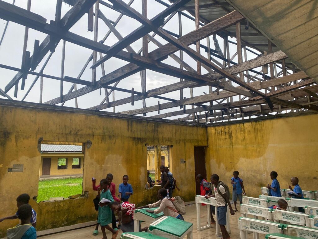 There, he saw children sitting in classrooms with broken roofs, exposed ceilings, and no doors or windows, completely vulnerable to the rain. The sight deeply moved him.