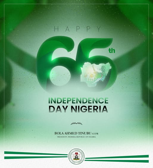 Today marks the 65th anniversary of our great nation’s Independence. As we reflect on the significance of this day and our journey of nationhood since October 1, 1960, when our founding fathers accepted the instruments of self-government from colonial rule, let us remember their sacrifice, devotion, and grand dream of a strong, prosperous, and united Nigeria that will lead Africa and be the beacon of light to the rest of the world.