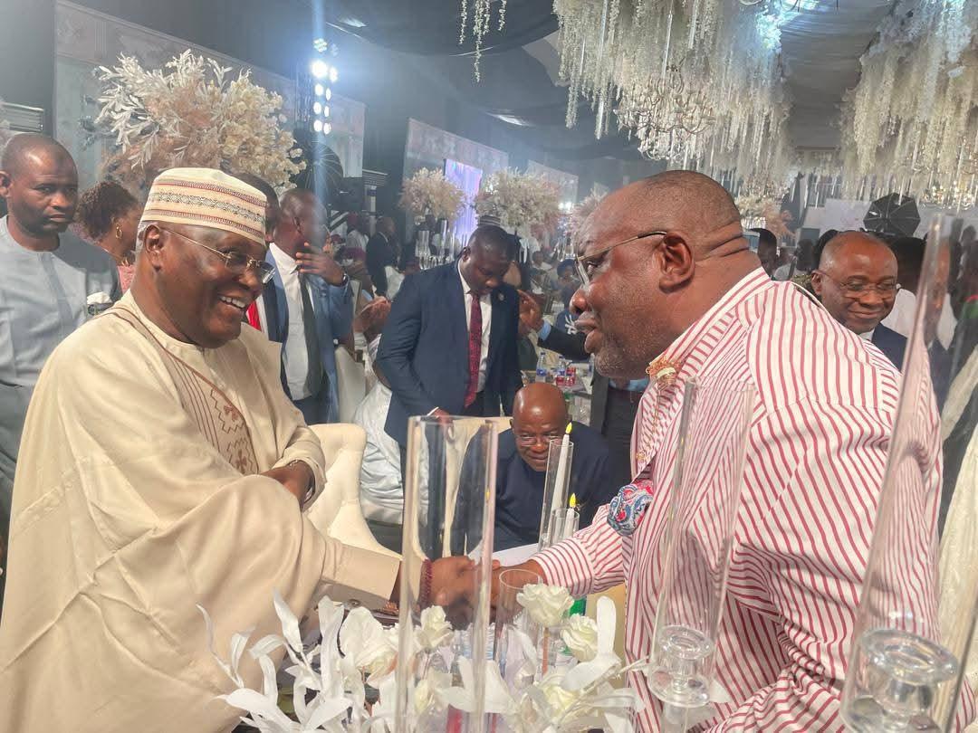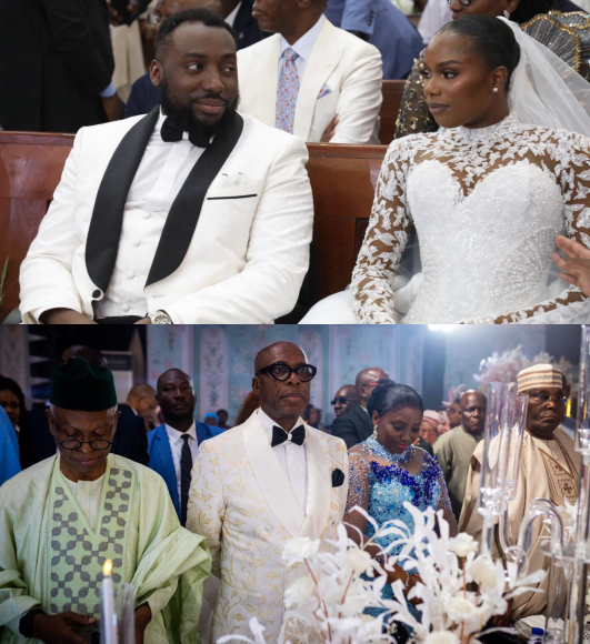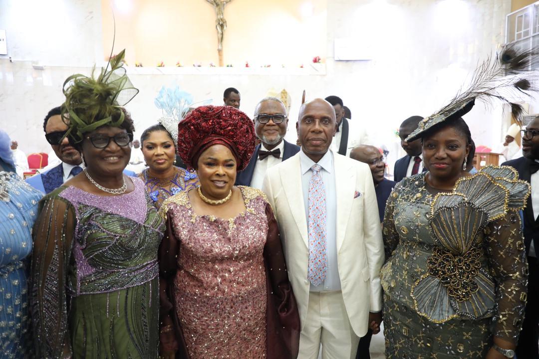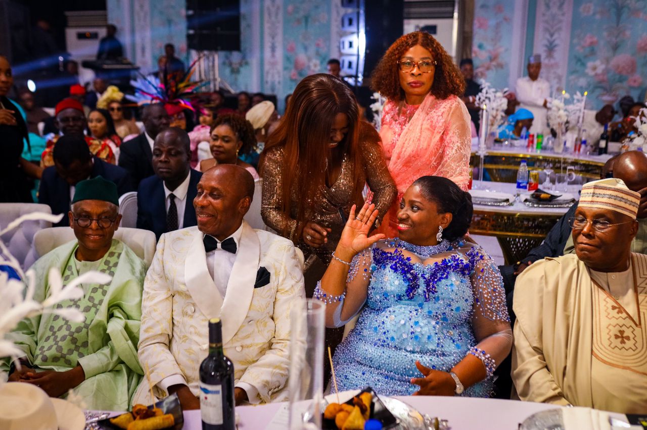 The church wedding, held at St. Gabriel Chaplaincy, Catholic Secretariat, drew dignitaries including former Vice President Atiku Abubakar, Abia State Governor Alex Otti, former First Lady Dame Patience Jonathan, and Dolapo Osinbajo, wife of former Vice President Yemi Osinbajo.