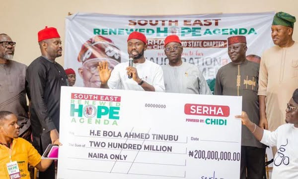 A political support group in the South-East, the South East Renewed Hope Agenda (SERHA), has raised ₦200 million to support President Bola Ahmed Tinubu’s re-election campaign ahead of the 2027 general elections.