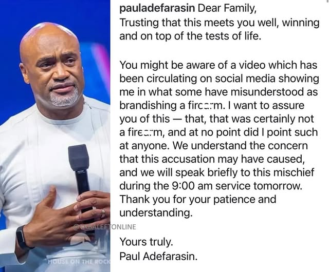 “That was Certainly not a Firearm” — Pastor Paul Adefarasin of House on the Rock Church Denies Displaying a Gun in Viral Video