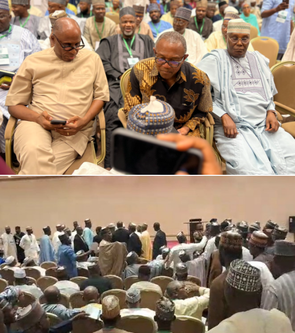 The meeting, held at the Abuja Continental Hotel, brought together key opposition figures, including former Vice President Atiku Abubakar, Labour Party’s Peter Obi, and former Rivers State Governor Rotimi Amaechi. It was organized by the National Political Consultative Group (North) as part of efforts to unite ahead of the next general election.
