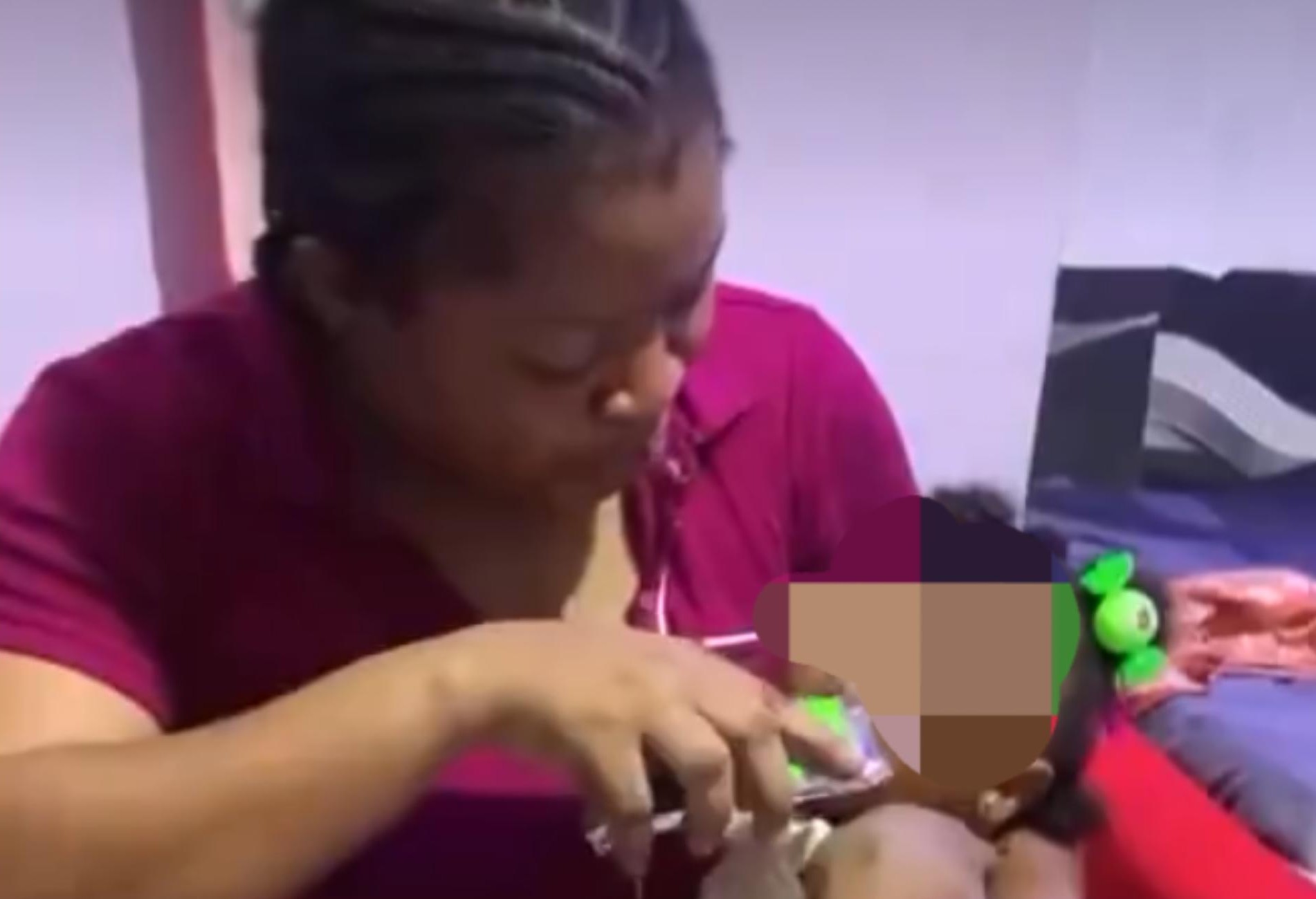 The clip, shared by influencer @ChuksEricE, captures the woman tearing open a sachet of what seems to be Triple Action Bitter with her teeth. After taking a sip herself, she gave it to the infant.