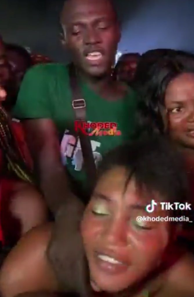 In the viral clip, the woman is seen reacting dramatically as the crowd tightened around her with a guy (in turns) standing very close behind her while she leaned forward, as if having an intimate moment with the guy, while different male artistes performed.